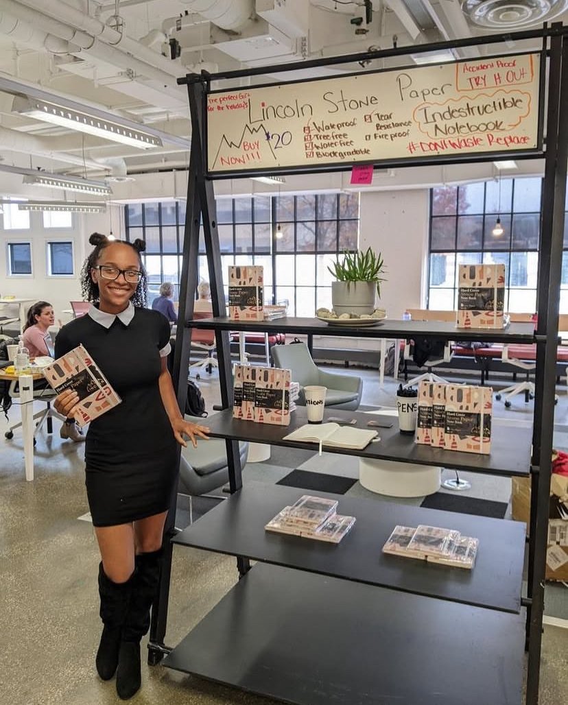 Lincoln Stone Paper crafts eco-friendly, tree-free notebooks from sustainable stone paper, while empowering Detroit's underserved communities through employment and economic opportunity.